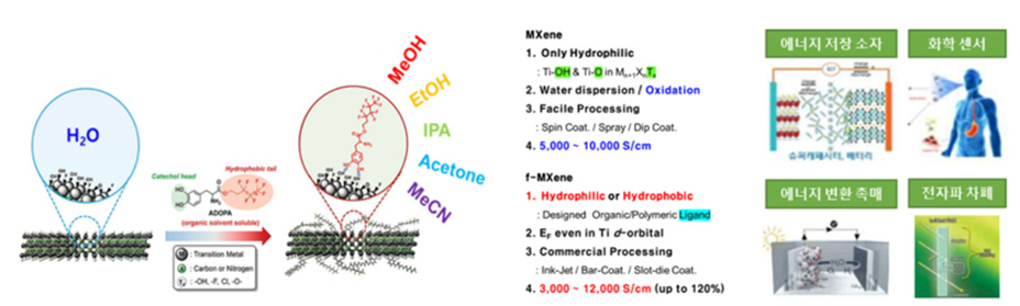 (주)맥세라에서는 Ti-계 맥신을 표면 개질하여 고분산성, 고전도성, 고산화 안정성을 갖춘 Functionalized MXene(F-MXene)을 개발하였습니다.